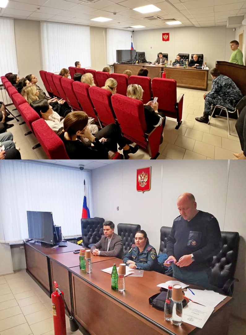 При проведении учебной эвакуации были отработаны действия сотрудников суда и судебных приставов при получении распоряжения на эвакуацию из здания суда при возникновении чрезвычайной ситуации: дана вводная команда о возникновении пожара; ответственное лицо сообщило о пожаре в пожарную часть по номеру телефона 101 и Службу экстренного реагирования по Единому номеру вызова телефона 112; выключена приточно-вытяжная вентиляция всех помещений; с помощью установленного сигнала и посыльными оповещены сотрудники аппарата суда и посетители суда; проведена эвакуация людей из здания; обесточено здание суда и проверено отсутствие людей во всех помещениях.