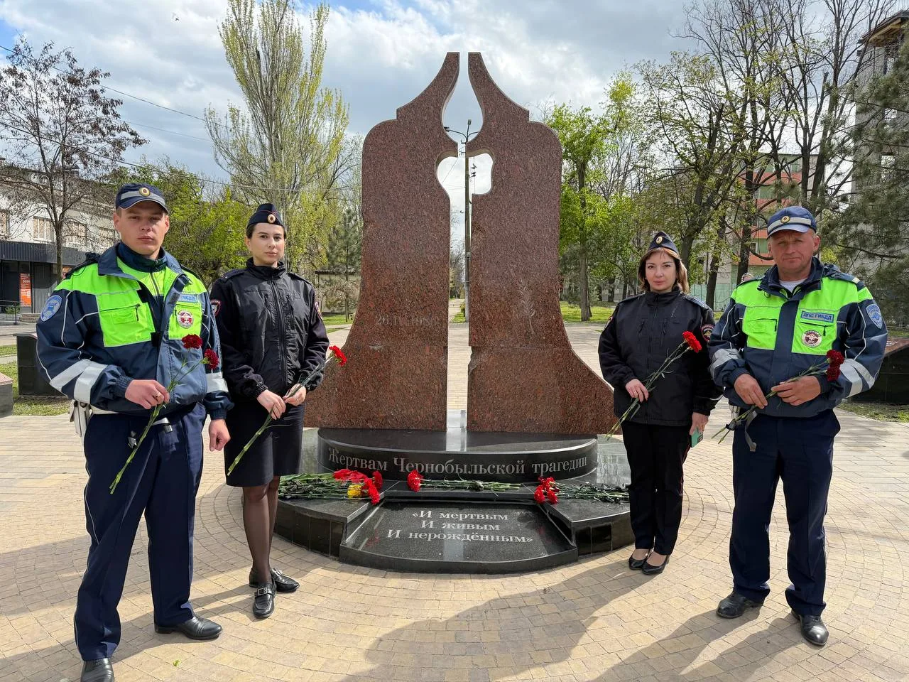 Сотрудники полиции почтили память погибших минутой молчания и возложили цветы у мемориала «Жертвам Чернобыльской трагедии». Героизм, мужество и самоотверженность участников ликвидации последствий радиационной аварии, произошедшей 40 лет назад, позволили спасти миллионы жизней.