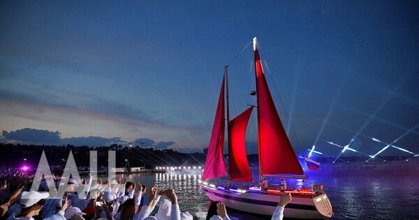 Одновременно с появлением на Неве брига "Россия" яхту под алыми парусами увидели и сотни выпускников в Мариуполе. "Ассоль", конечно же, подошла к берегу с моря, как и описано в легендарной повести Александра Грина. И точно как у классика, вызвала...