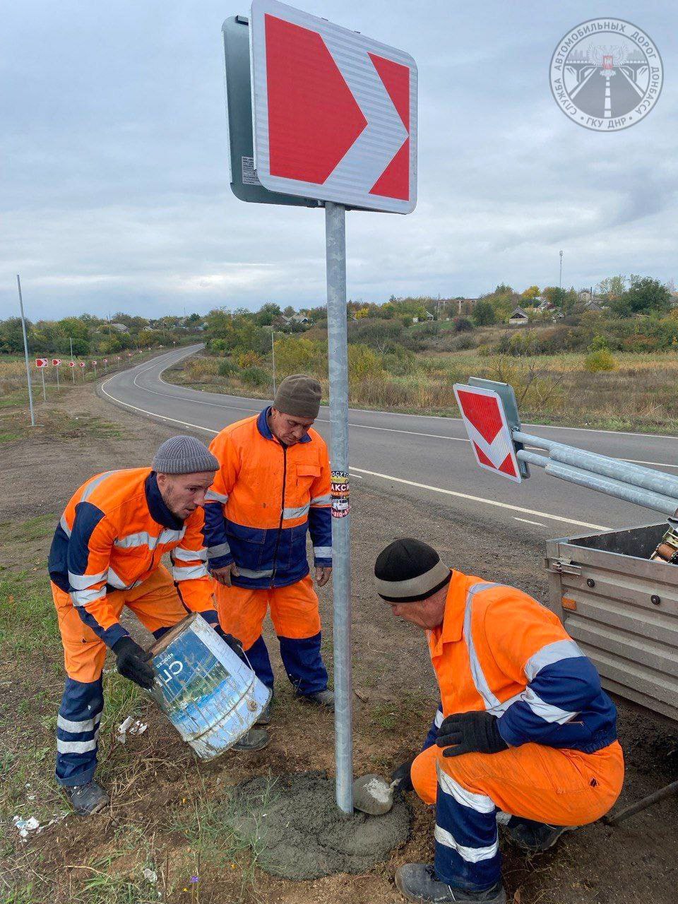 Также в рамках содержания автомобильных дорог за минувшие сутки установили новые дорожные знаки на автомобильных дорогах Павловка - Петровское - /Белгород - Старобельск - Луганск - Донецк - Мариуполь/и Ялта - Белосарайская Коса Мангуш.