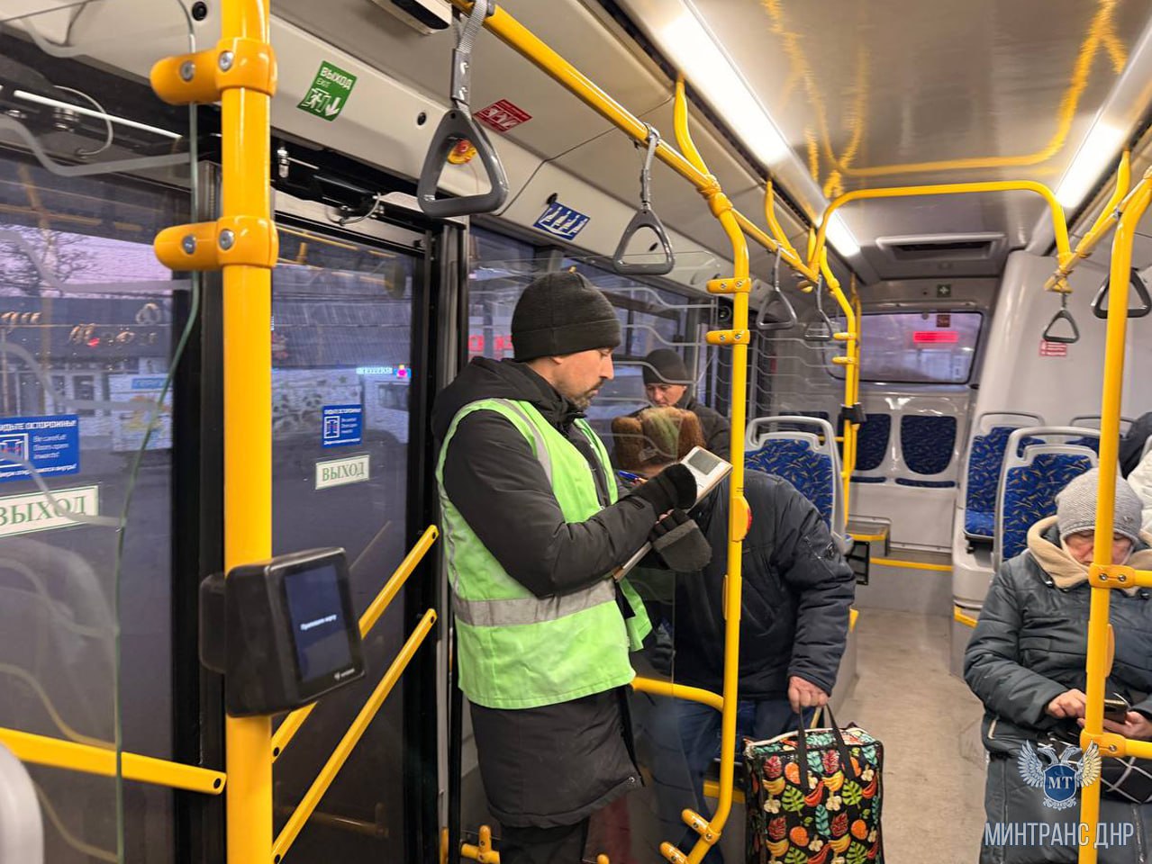 В рамках поручения Главы Республики Дениса Пушилина и Правительства ДНР сотрудники регионального Минтранса совместно с представителями контрольно-диспетчерской службы ГУП ДНР «Автовокзалы Донбасса» провели рейд по выявлению безбилетных пассажиров, а также мониторинг пассажиропотока, соблюдения расписания движения, наличия системы безналичной оплаты проезда на муниципальных и межмуниципальных маршрутах, отправляющихся с АС «Южный» в г. Донецке и ДС "Плехановская" в г. Макеевка.