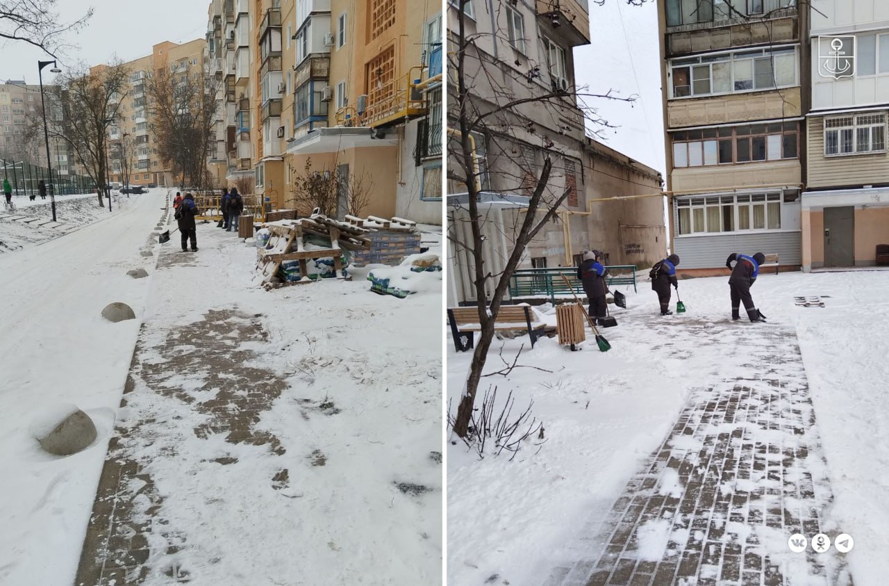В Ильичевском районе коммунальщики убрали снег во дворах многоквартирных домов по улицам Карпинского и Сеченова.