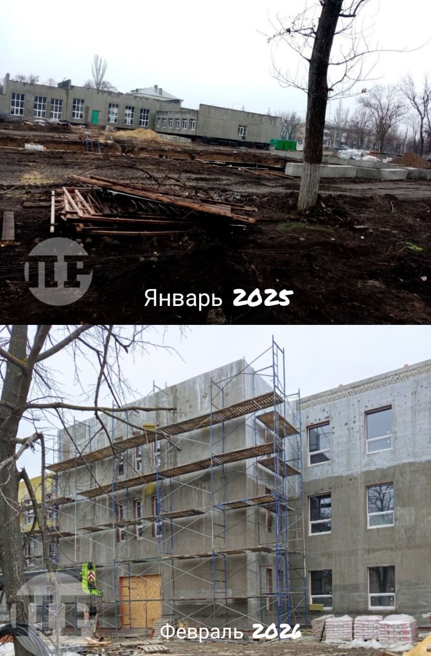 В этом году старейшей школе Левобережья - №40 - исполняется 90 лет. В январе 2025 года на ее месте только закладывали фундамент. За год строители возвели на месте снесенного здания новый корпус, сегодня можно видеть его в окружении строительных лесов и штабелей материалов.