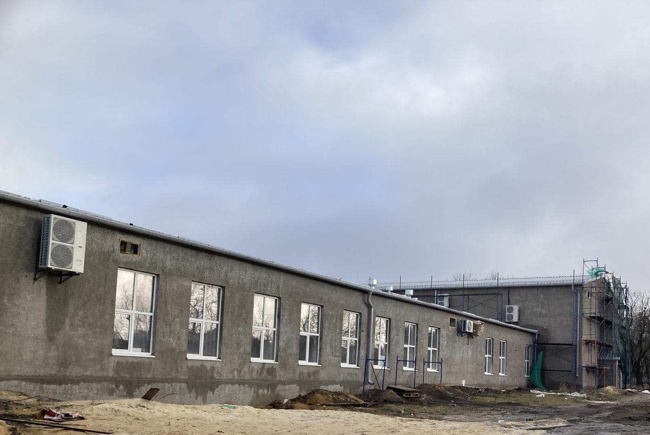 Сейчас строители ведут фасадные и кровельные работы, устанавливают новые окна и двери.