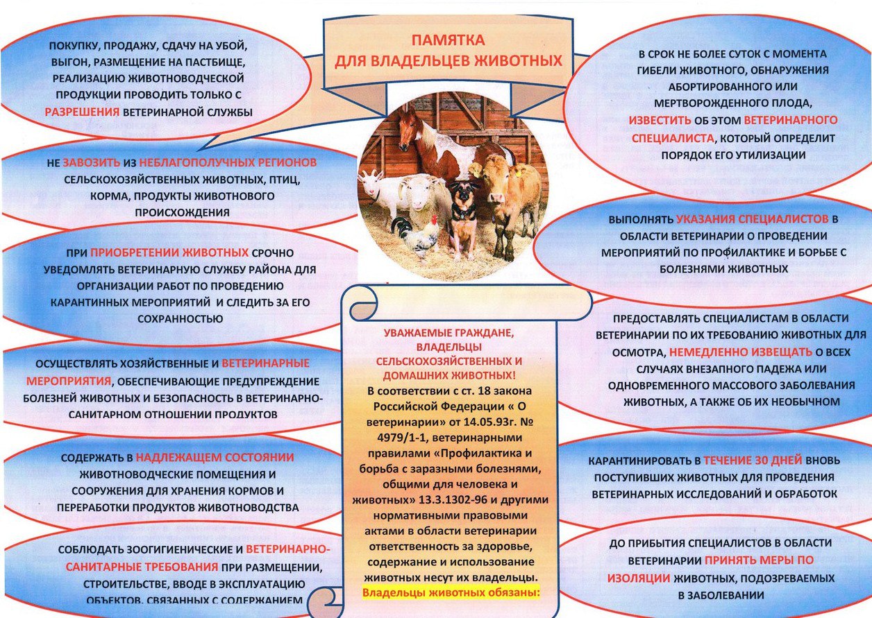 Важно знать и соблюдать меры по предотвращению распространения заразных болезней животных на территории Республики.Ознакомьтесь с памятками, чтобы защитить своё животное хозяйство и сохранить здоровье животных!