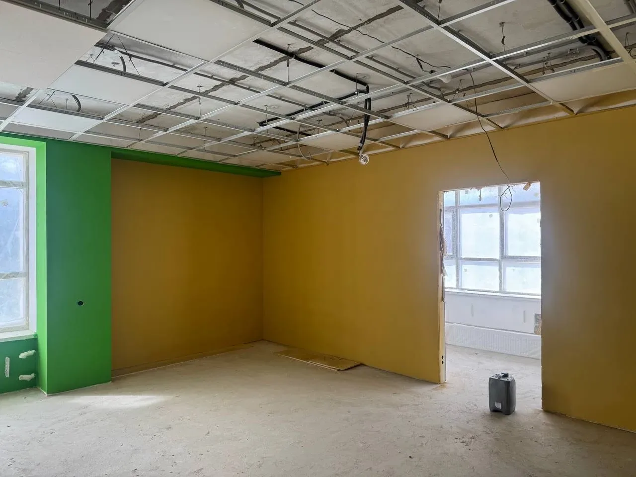 Работы по чистовой отделке (покраске) помещений второго этажа — новый этап восстановления центра социальной реабилитации для детей-инвалидов в Мариуполе, который выполняют строители Тульской области.