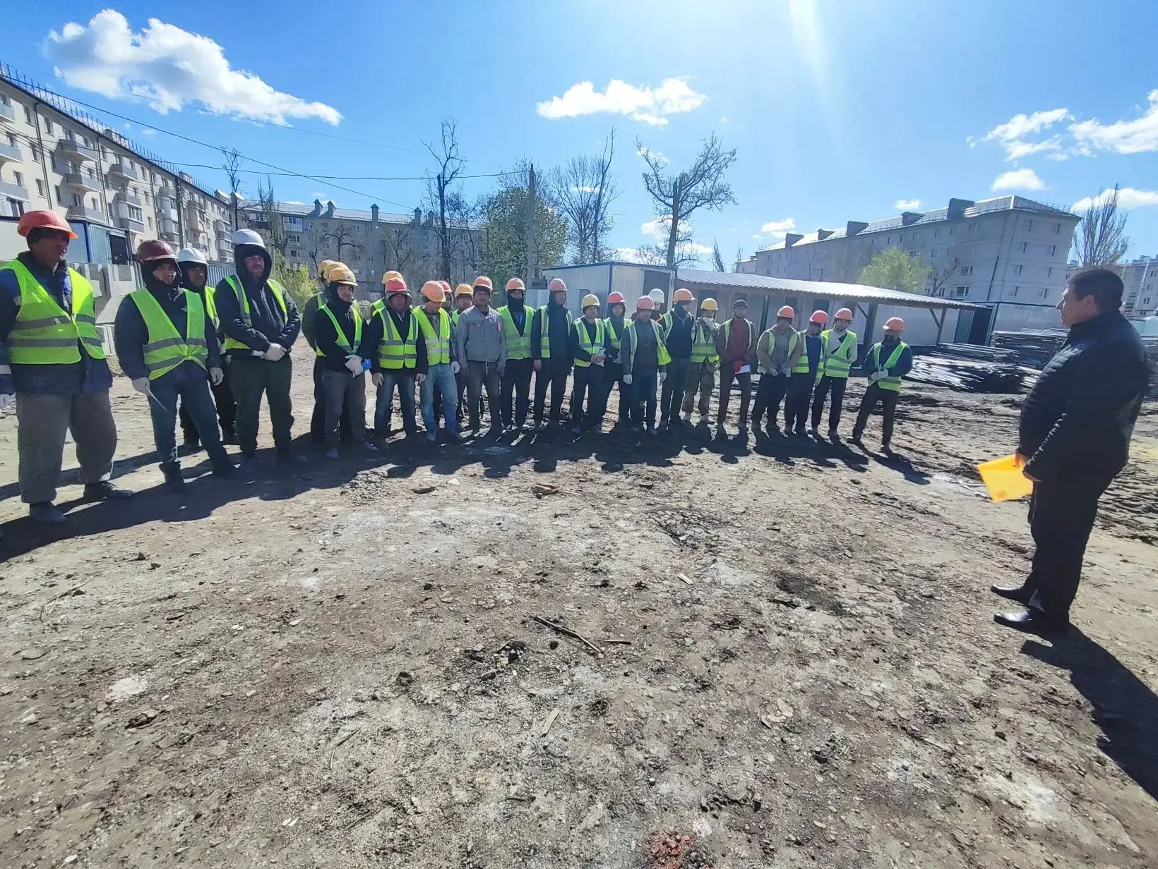 Специалисты общественно-политического сектора отдела по вопросам внутренней политики АГО Мариуполь побывали на очередной стройплощадке. Здесь в рамках курса лекций «Содействие адаптации трудовых мигрантов в Российской Федерации» они провели встречу с рабочими из стран ближнего зарубежья.