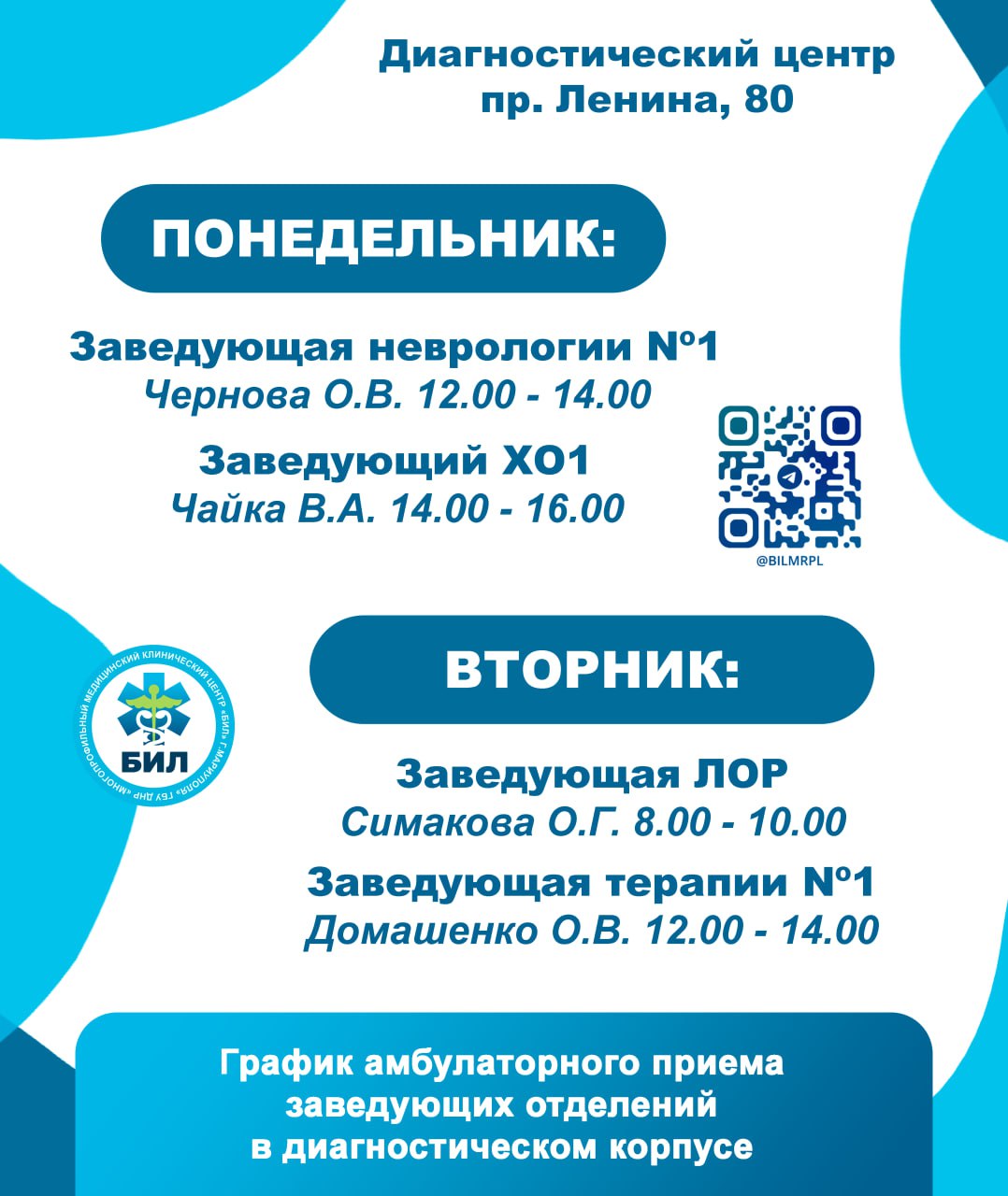 График амбулаторного приема заведующих отделений в диагностическом корпусе (ул. Ленина 80)