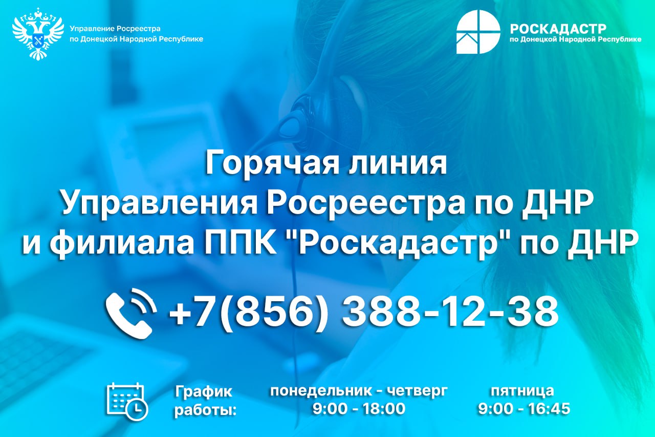 Управление Росреестра и филиал ППК «Роскадастр» по ДНР напоминают жителям республики, что с помощью многоканальной горячей линии можно получить консультации по широкому кругу вопросов, относящихся к компетенции ведомств.