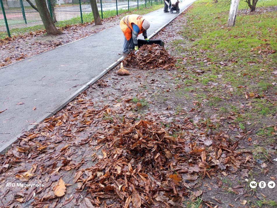 В Мариуполе коммунальщики продолжают осеннюю уборку придомовых территорий