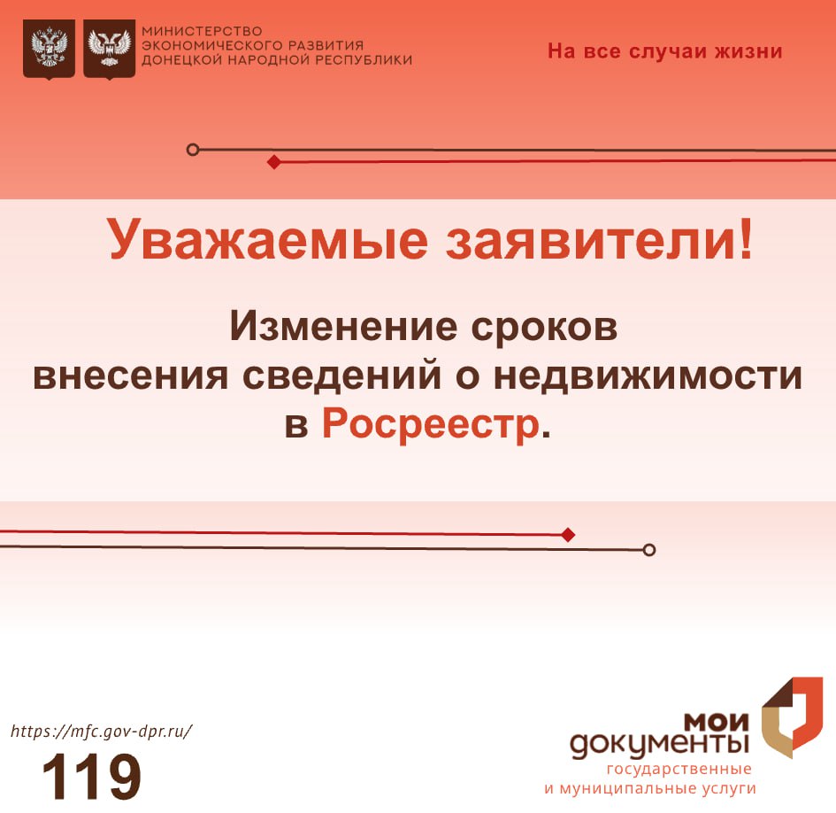 Напоминаем: Получить услугу по внесению сведений в Росреестр можно в любом отделении МФЦ ДНР.