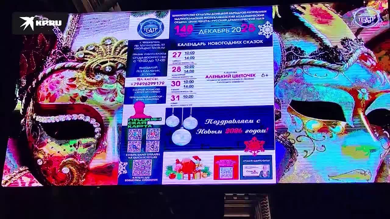 Вечером мариупольский драмтеатр ярко освещен, и на его окнах уже висят роскошные шторы