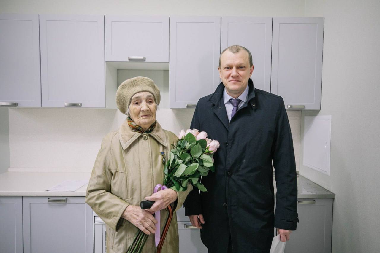 Глава Мариуполя Антон Кольцов вручил ключи от новых компенсационных квартир ветерану Великой Отечественной войны Екатерине Боевой, а также дочери ветерана Татьяны Лебедько.