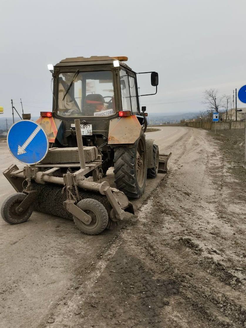 произвели очистку покрытия механизированным способом от грязи и снега, уборку мусора и различных предметов на автодорогах: