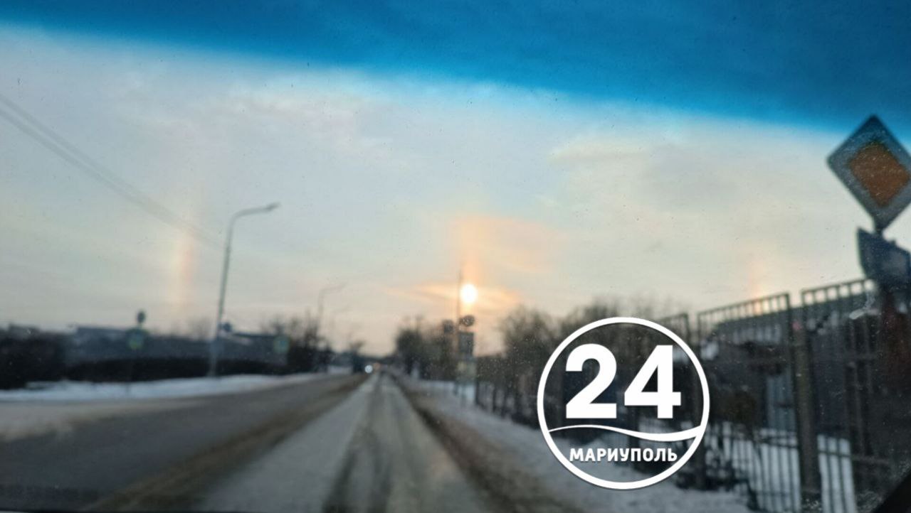 Сейчас над Мариуполем наблюдают солнечное гало — оптическое явление, когда вокруг Солнца появляется яркий светящийся круг.