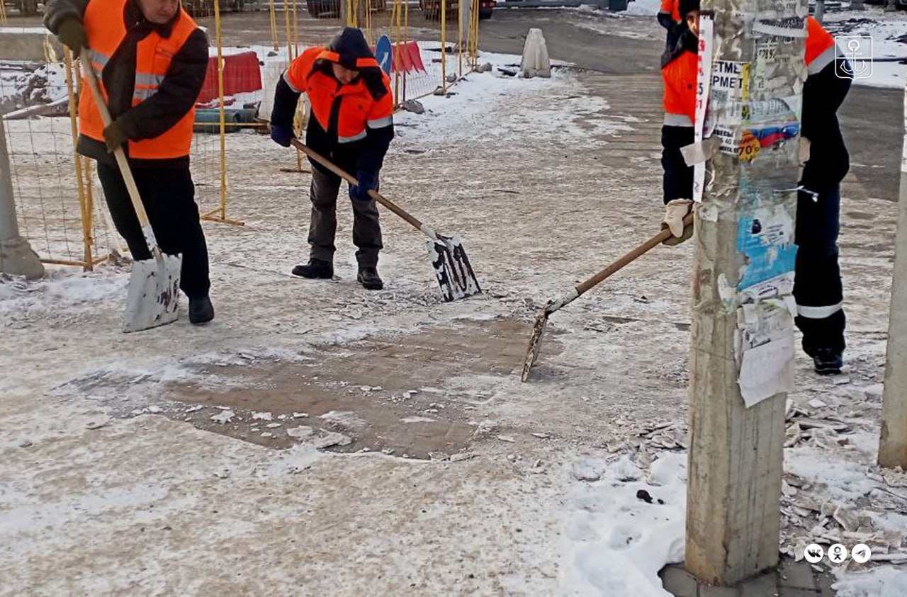 К работам привлекались более 20 квалифицированных сотрудников, которые очистили тротуары от снежных заносов и посыпали противогололедной смесью.