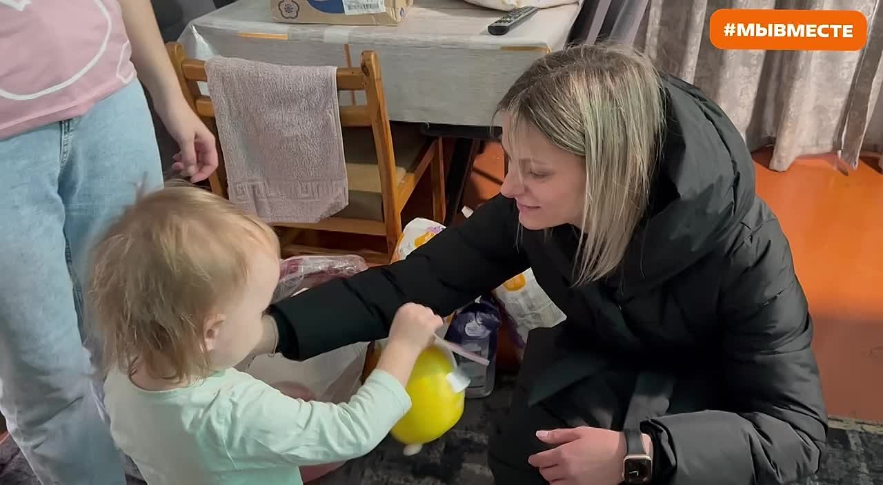 Мы передали самое необходимое: подгузники, детское питание, продукты, средства личной гигиены. А для детей мы привезли игрушки и сладкие подарки, чтобы хоть немного скрасить их дни.