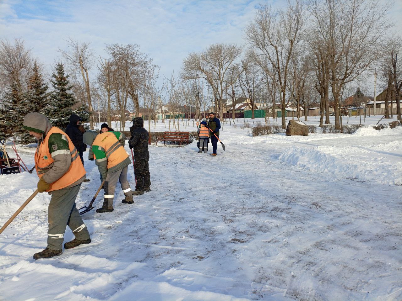 В результате проведенной работы были очищены пешеходные дорожки от снега и наледи.