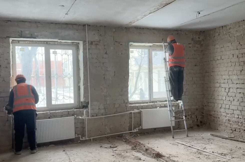 «В Центральном ЗАГСе Мариуполя продолжаются демонтажные работы. На данный момент на 80% мы сняли старые штукатурки со стен, с колонн, демонтировали плитку. Также параллельно сейчас идет согласование с пользователем, планировочного решения по Центральному ЗАГСу по расположению кабинетов рабочего персонала, ну и, соответственно, самого торжественного зала», — рассказал Александр Ряскин, начальник участка ООО «Модуль-Центр».