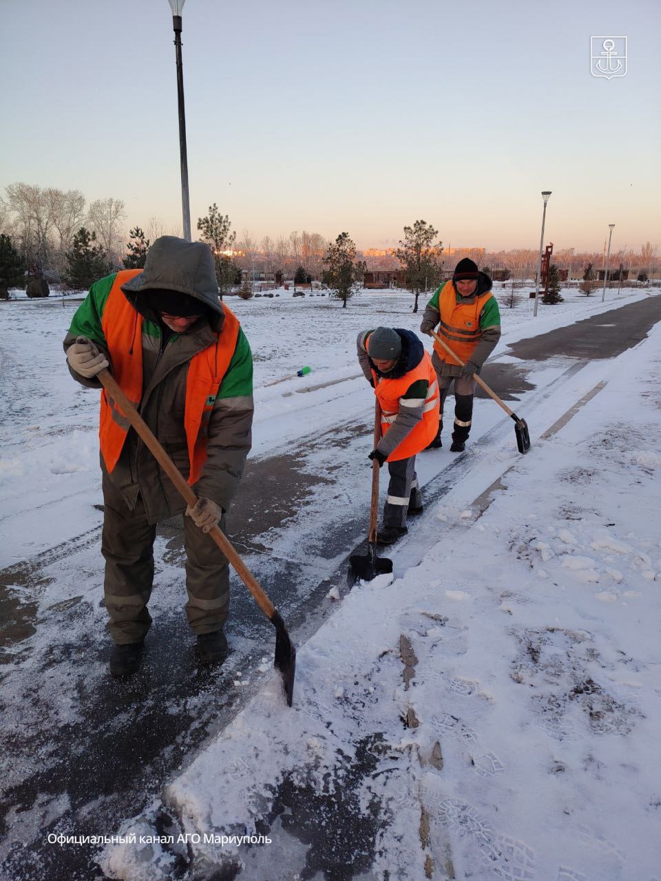 Коммунальщики продолжают расчищать пешеходные зоны от снега и наледи