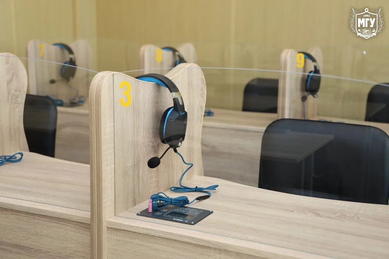 Кабинет оснащен компьютерами со специализированным программным обеспечением для аудио- и видеозаписи, а также анализа произношения.
