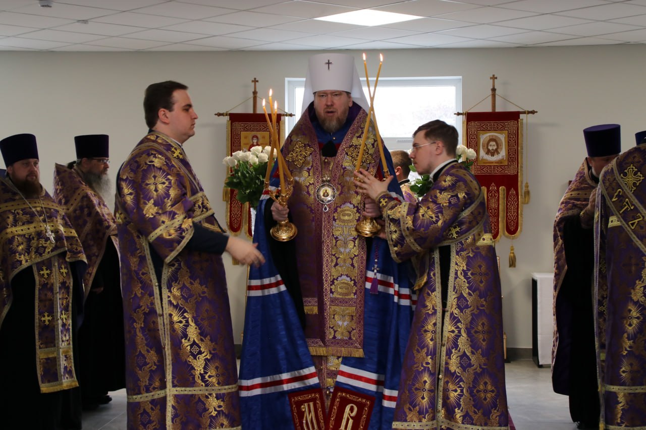 Митрополит Донецкий и Мариупольский Владимир освятил восстановленный главный корпус Донецкого национального университета экономики и торговли им. М. Туган-Барановского накануне его открытия. В обновленном здании собрались преподаватели и сотрудники университета во главе с ректором Светланой Дрожжиной.