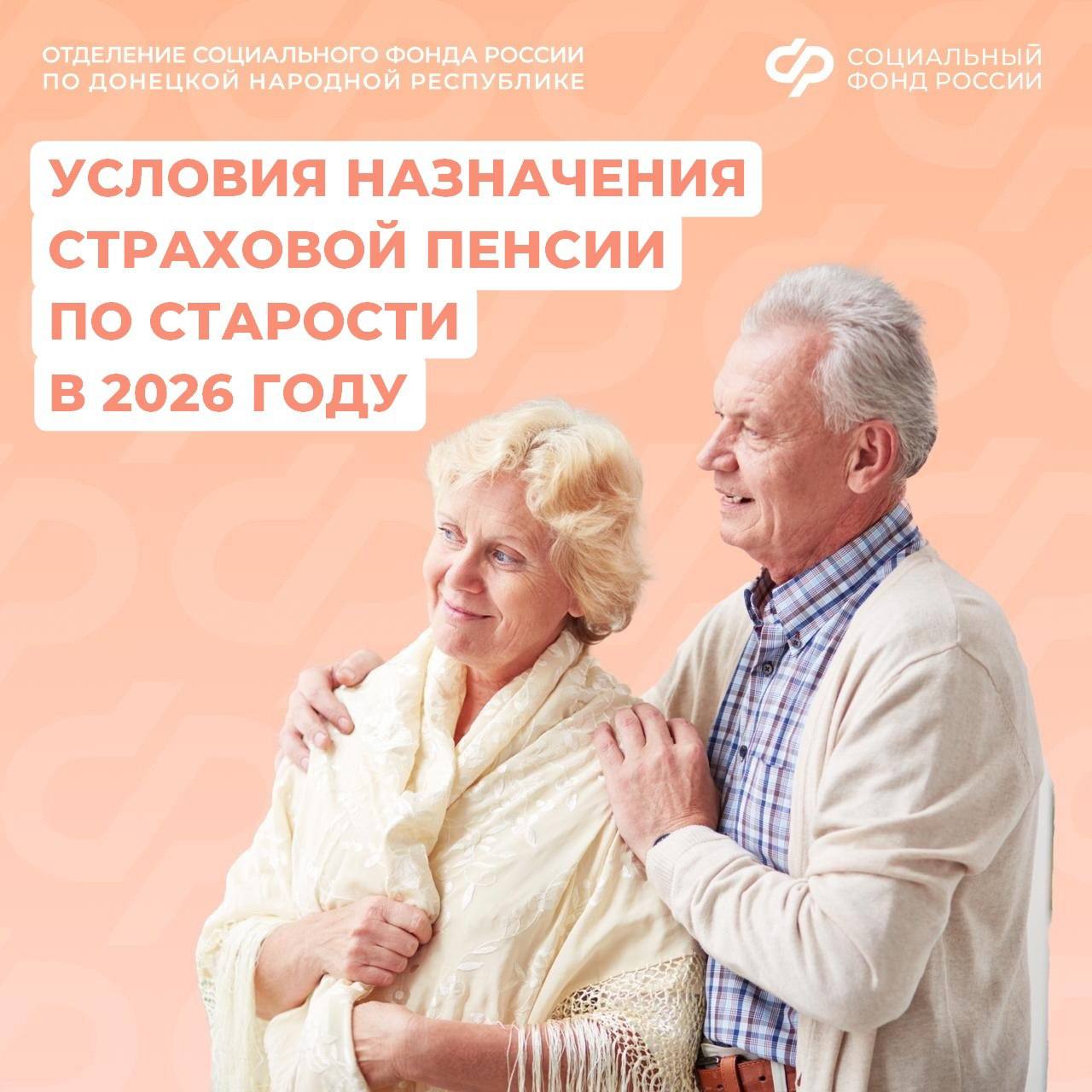 В 2026 году в ДНР на страховую пенсию на общих основаниях выходят женщины 1967 и мужчины 1962 г.р. при наличии не менее 15 лет страхового стажа и 30 индивидуальных пенсионных коэффициента.