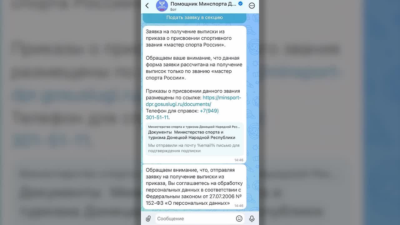 На базе национального мессенджера MAX появился чат-бот Помощник Минспорта ДНР.