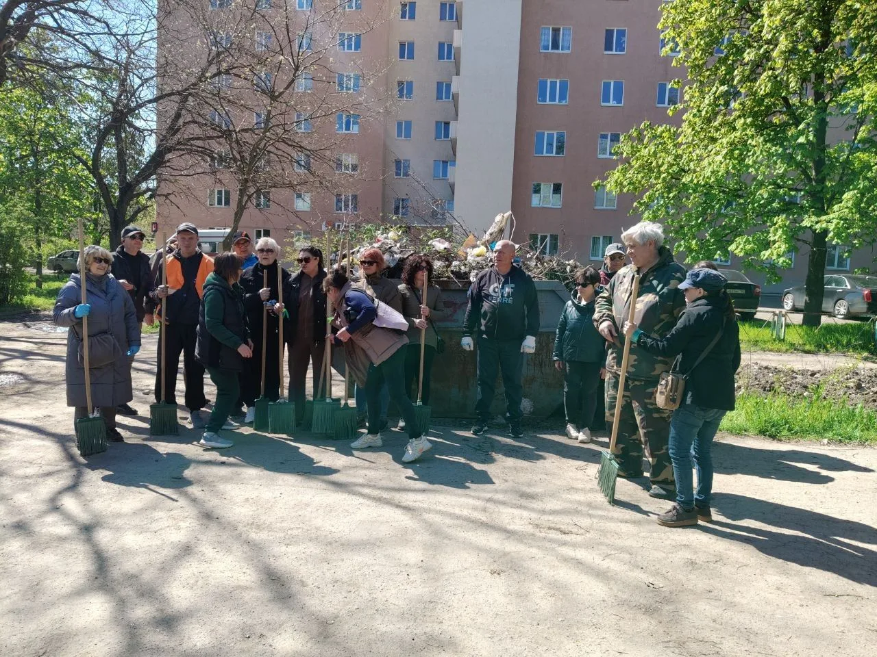 Участники с энтузиазмом взялись за уборку мусора, подметание тротуаров и благоустройство зелёных зон.